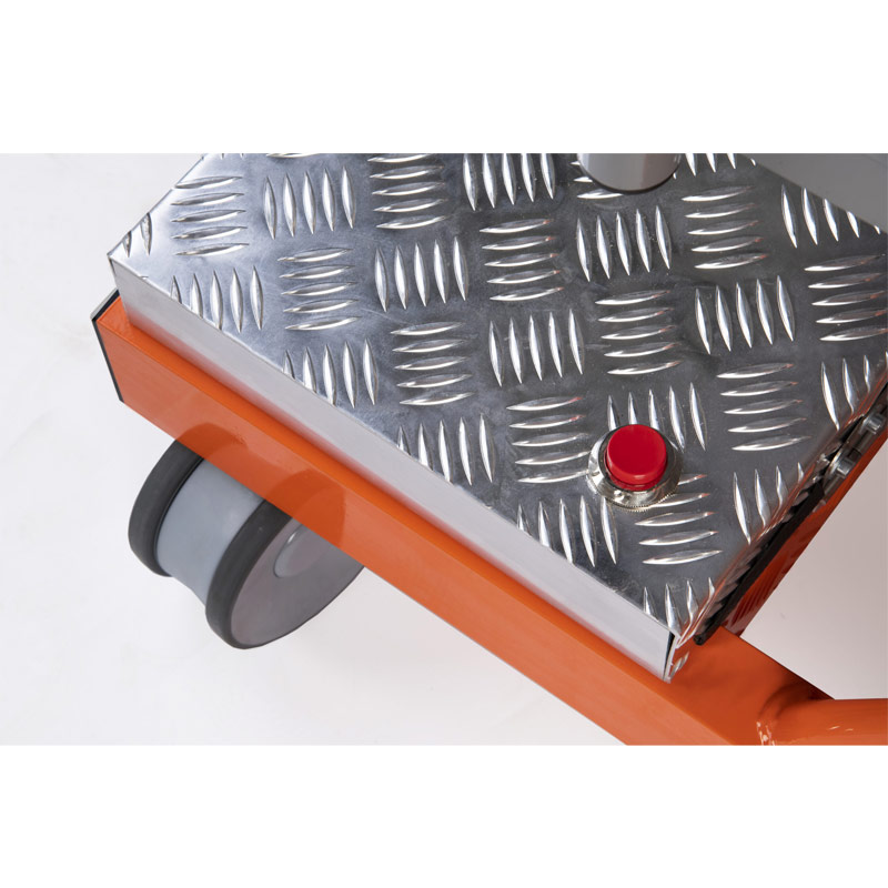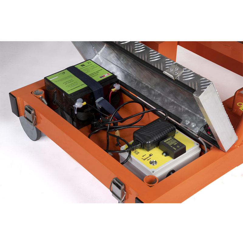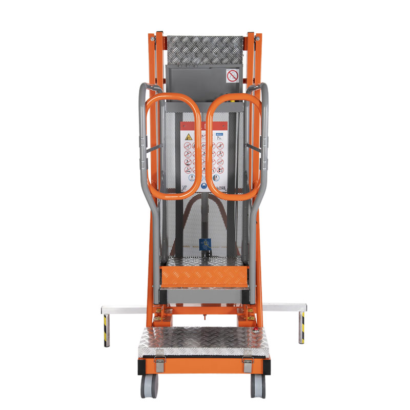 Extrémně lehká hliníková konstrukce, ergonomický tvar a malá velikost umožňují snadný transport zařízení a snadný pohyb na pracovišti. Pohonný systém se skládá z elektrického pohonu 1700 N a plynové pružiny 1500 N. Výtah je poháněn 12V 33 Ah gelovou baterií.