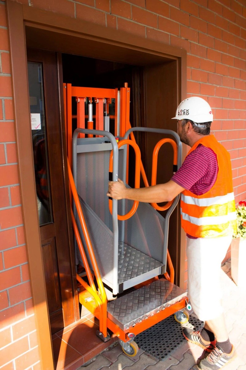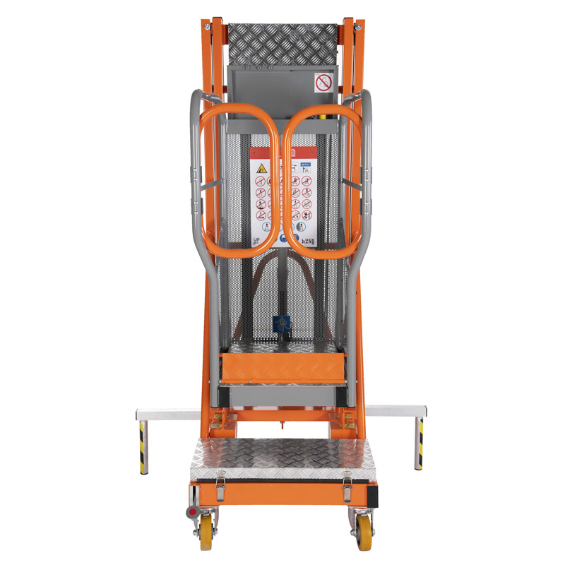 Extrémně lehká hliníková konstrukce, ergonomický tvar a malá velikost umožňují snadný transport zařízení a snadný pohyb na pracovišti. Pohonný systém se skládá z elektrického pohonu 1700 N a plynové pružiny 1500 N. Výtah je poháněn 12V 33 Ah gelovou baterií.