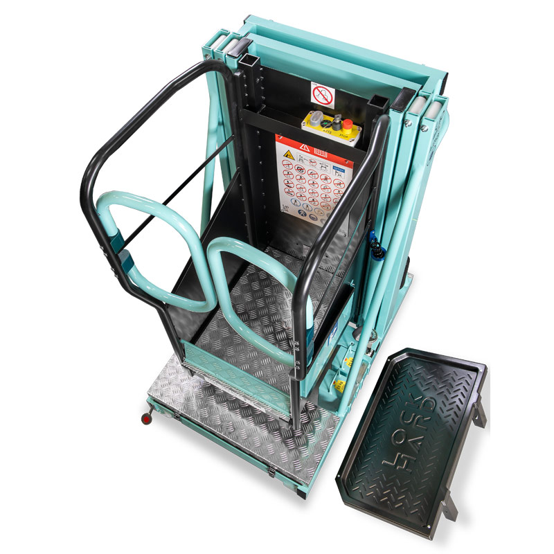 Osobní výtah Up Lift 5 CARRY 140 umožňuje bezpečnou práci ve výškách až 5 pracovních metrů s maximálním zatížením 140 kg. Je vybaven 4 otočnými koly s centrálním systémem blokování kol.